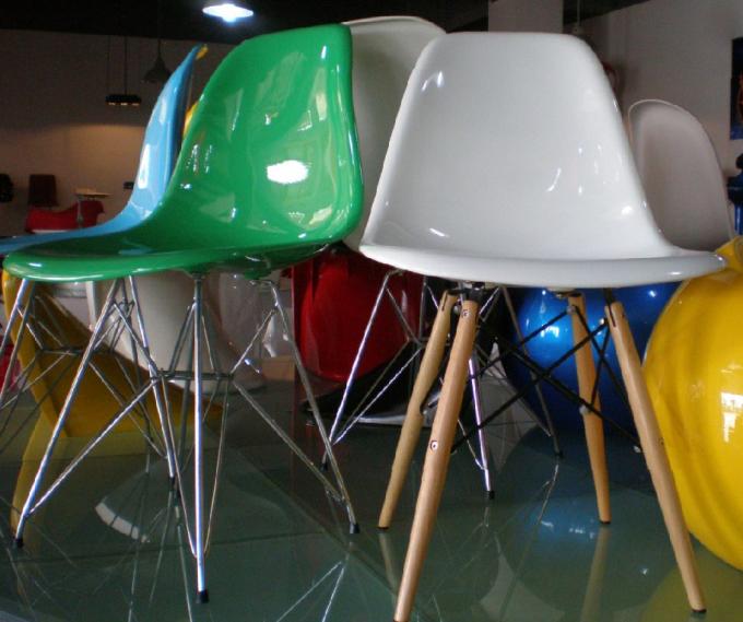 الخيارات: يتوفر Eames Plastic Chair ككرسي زائر ، أو كرسي طعام ، أو كرسي هزاز ، أو كرسي دوار ، أو في إصدارات التراص ، مع أقواس لعصابات الجلوس. هي مناسبة للأصداف محمولة على شعاع للاستخدام في مناطق الانتظار.